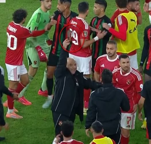- وليد صلاح الدين يشير بآلة حادة ألقاها جمهور الجيش الملكي على لاعبي الاهلي وتسببت في إصابة تريزيجيه.