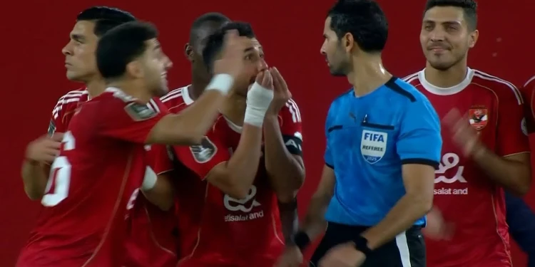- صدمة ديانج بعد احتساب الحكم ركلة جزاء غير صحيحة ضد الأهلي