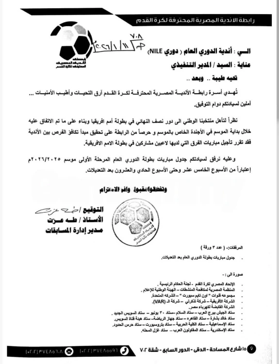 وجاء قرار التعديل هذا، بقرار من رابطة الأندية المصرية، بعد تأهل منتخب مصر إلى دور نصف نهائي كأس الأمم الإفريقية.