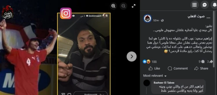 فيما رد بشير التابعي، على منشور عبر صفحة صوت الأهلي، وكتب في التعليقات: "إبراهيم أكثر من أخ، واللي بيني وبينه أكبر من كدا، وكلامي متفسر غلط".